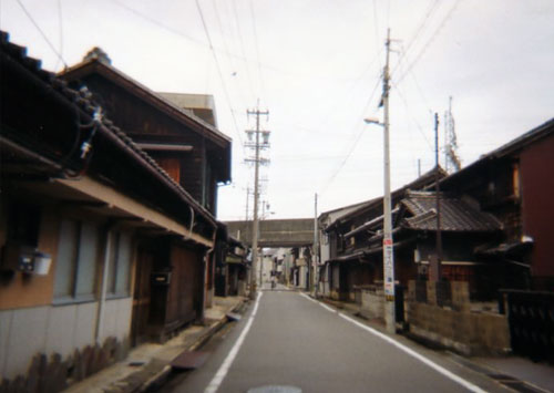 内部川を越えて住宅街をぬけると人がたむろしているのが見えました。日永の追分には水が沸いているので、汲みに来てる人が沢山いるのです。ここは南下して伊勢参りに行く人と京都に行く人の分岐点です。いつか、伊勢へ行く道も行ってみたいな